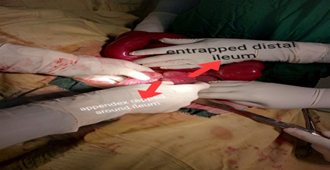 Figure 1: Intraoperative finding of appendicoieal knotting.