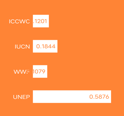 The test results show that CR is close to or less than 0.1, which means that this paper can accept these weights. In our analysis, this paper was tested against the available reference data, assigning weights of 0.3, 0.3, and 0.4 to people, size, funding, and power, respectively. Correlation scores were assigned to the four organizations through data integration. This paper found that the United Nations Environment Programme had the highest overall rating, indicating that they were the most suitable partners. Of course, it should be noted that our dimensional scores may not always be accurate due to the lack of extensive data, but the large differences in the final combined scores are sufficient to demonstrate that UNEP is the best choice for our clients, as shown in Figure 1 and Figure 2.