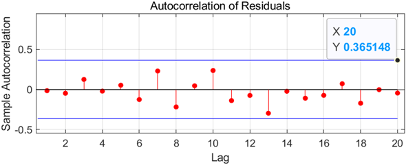 This paper first plotted the normalized raw data, and by estimating the model parameters and fitting the normalized data, this paper obtained the predicted impact data for the next five years. Then this paper inverts the normalized prediction results back to the original data space, establishes the evaluation model, and then draws the residual and auto-correlation graphs by drawing the original data and prediction results. The results are shown in Figures 4 & 5.