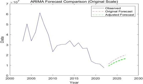 At this stage, this paper utilized advanced statistical modeling techniques, in particular, ARIMA (autoregressive integrated Moving Average) models, to predict the impact on the illegal wildlife trade after the implementation of the study. The ARIMA model captures trends, seasonality, and random fluctuations in time series data to make predictions about future illegal trading volumes.