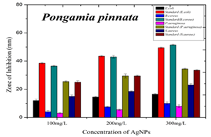 Keywords: pongamia pinnata; antibacterial, AgNPs; gram positive; gram negative; zone inhibition