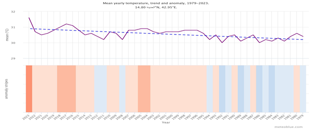 Figure 1: Temperature of 1979 - 2023 in Hodeidah [17].