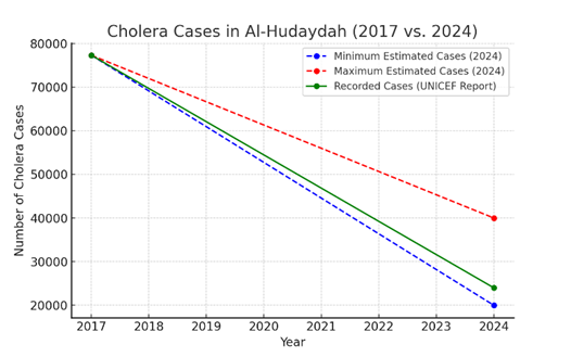 Cholera Prevalence Analysis: In 2017: 77,286 cases, making it one of the most affected years and 2024: Approximately 24,000 to 40,000 cases recorded.