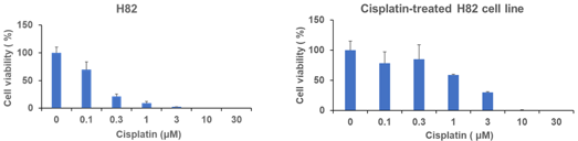 We found cisplatin decrease the cell viability only for parental N417 and H82 cell lines but not for N417/CDDP and 0.5 μM cisplatin-treated H82 cell line, but paclitaxel shows more effective response not only parental cell lines but also cisplatin resistant and treated cell lines.