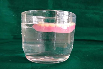 The Processed Denture was duplicated in self-cure acrylic resin and weight of both the prosthesis was evaluated. A float test was performed on the processed denture which indicated the light weight of the prosthesis.