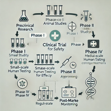 Phase III: Examines the new treatment in a broader population and compares it to traditional treatments. Following approval, phase IV is carried out to track the treatment's efficacy and long-term consequences in practical setting.