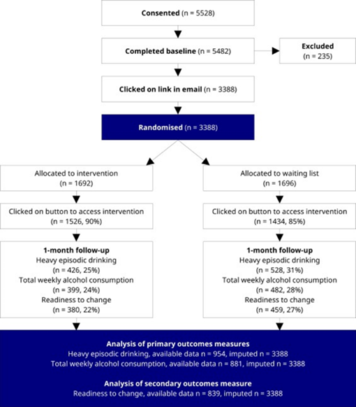 Figure 2: Effects of a waiting list control design on alcohol consumption among online help-seekers: A randomized controlled trial.