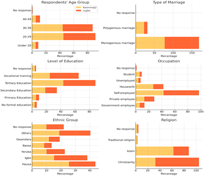 Figure 1: Bar Charts showing the demographic characteristics of the Karonmajiji and Lugbe participants