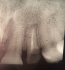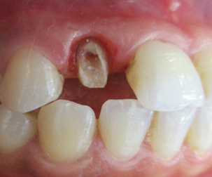 The level of vestibular damage is slightly subgingival. The prosthetic treatment plan consisted of fabricating a zirconia crown after coronoradicular reconstruc-tion. The patient decided to keep the diastemas. The removal of carious tissue and endodontic retreatment were performed (Figure 3).