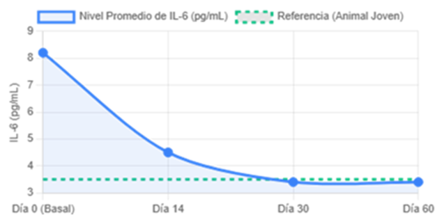The most striking result was the observation of cascading systemic effects. The attenuation of IL-6 was sufficient to dismantle the pro-inflammatory network, inducing significant reductions in other key markers, as quantified in Figure 2. This effect demonstrates that IL-6 acts as a "master node" in the inflammaging network.