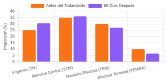 In addition, we observed a result that transcends simple anti-inflammation: the restoration of the generative capacity of the immune system. The therapy induced a significant increase in the population of circulating naïve T cells and a rebalancing of memory compartments, a true act of functional rejuvenation detailed in Figure 3.