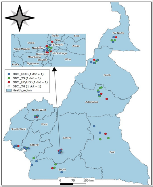 The study was conducted in the identity and non-identity OBCs of key populations (Sex workers, Men who have Sex with Men, Transgender, Drug users and Injectable Drug users) in ten (10) regional capitals including Limbe and Kribi.