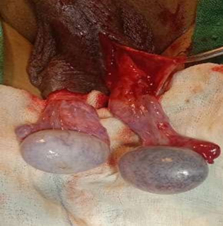 Intraoperatively, the left testis appeared dusky and ischemic, consistent with compromised perfusion. Detorsion was performed, and the testis was wrapped in a warm saline-soaked abdominal swab to promote reperfusion and patent was given 100% oxygen via face mask. After approximately 15 minutes, areas of vascular recovery were observed within the testis. Given the restoration of blood flow, bilateral orchiopexy was performed to prevent future torsion.
