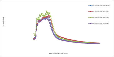 Figure 1: The Wavelength scanning of Hura crepitans aqueous extract with metallic nanoparticles.